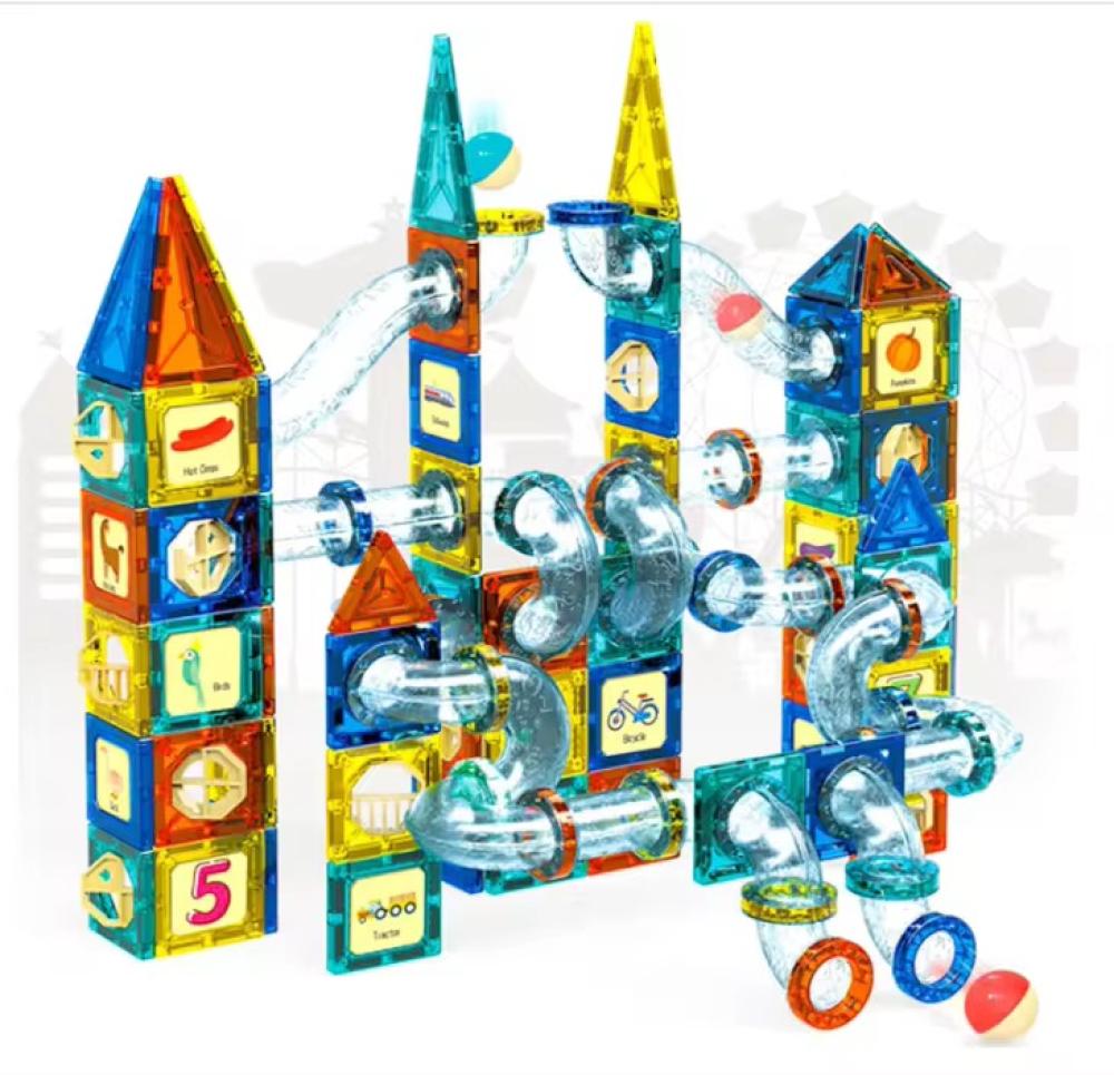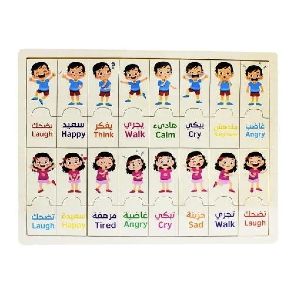 استمتع بتعليم طفلك بطريقة ممتعة مع لعبة المكعبات المغناطيسية المكونة من 97 قطعة، ولوح الخشب الذي يصف المشاعر
